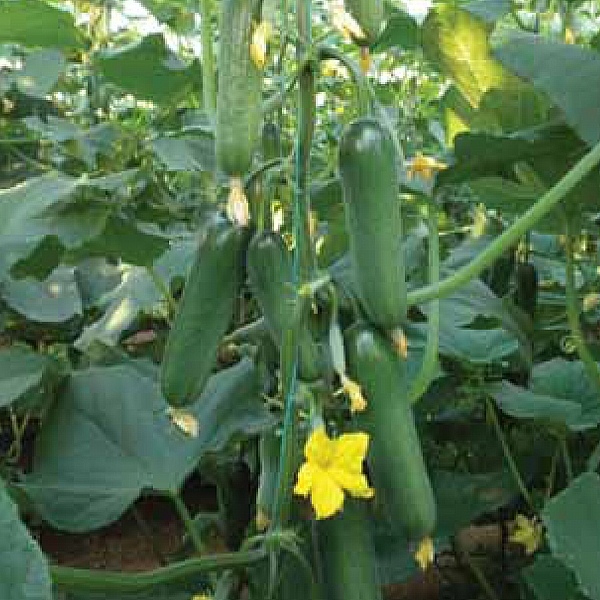 Yetiştirme: Bahar ve güz sezonu, sera yetiştiriciliğine uygun. Bitki: Partenokarpik, tüm çiçekler dişi, erkenci, koltuklu, boğum arası kısa, multi, her boğumda 4-5 meyve, güçlü ve çok verimli. Meyve: Badem tipi, açık yeşil, gevrek, az oluklu, raf ömrü uzun, yüksek kalitede ve 10 - 12 cm. Dayanım: PM ve DM. |